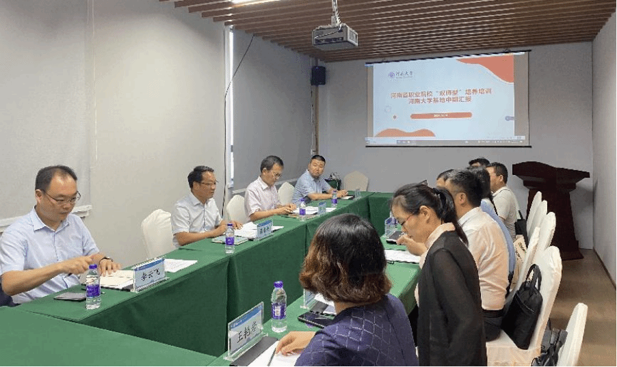 8月14日下午,河南省职业院校教师省级培训视导工作第四视导专家组薛东亮一行莅临我校,对我校“双师型”教师培养培训工作进行视导。专家组由郑州工业安全职业学院副院长薛东亮、河南机电职业学院产教科创新发展中心主任李饶、郑州市教评中心师资发展中心负责人李云飞、郑州工业安全职业学院继续教育学院院长张凯组成。beat365亚洲版官网干部培训中心主任、继续教育学院院长袁凯强,beat365亚洲版官网党委书记孔涛,党委副书记、执行院长李竞艳,副院长张召鹏及基地管理人员出席会议。会议由孔涛主持。