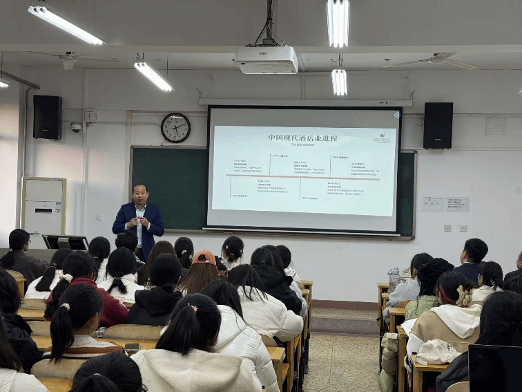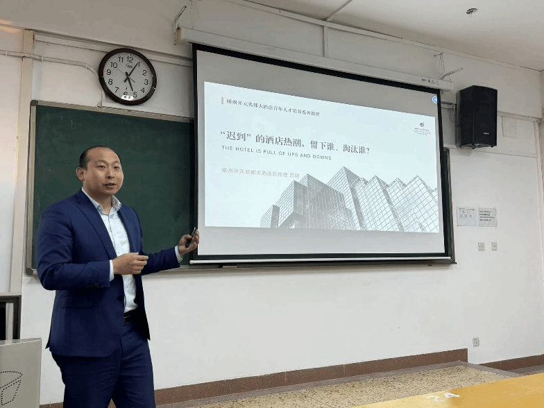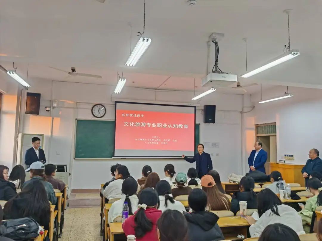 为使学生进一步提升专业素养、明确择业方向、提升专业认同感,11月26日下午,beat365特邀浙江嵊州开元名都大酒店总经理吕刚、人力资源总监李昊轩走进课堂,聚焦文化旅游管理类职业发展,探讨文化旅游专业学生未来职业成长路径。