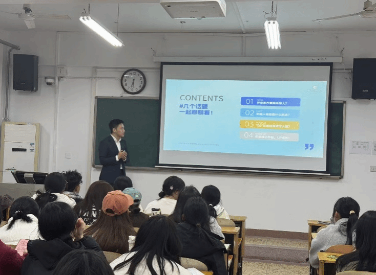 人力资源总监李昊轩从“行业是否需要年轻人?”“年轻人将面临什么职场?”“‘00’后职场焦虑怎么破?”这三个方面与学生们分享与交流。李昊轩是开元旅业集团年轻的中层干部,他结合自身工作经历,指出现阶段学生们需要好好规划自己的大学生活,保持积极向上的生活情绪,为以后的从业之路打下基础。关于如何在“躺平和内卷”的职场环境中生存这个问题,李昊轩提出中肯建议:要在年轻的时候去努力追求个人理想的职业,工作时敢于表达自己的想法。