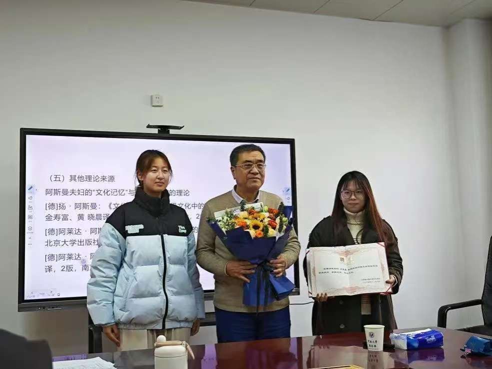 来自beat365亚洲版官网民俗学社的学生代表向刘铁梁教授献上了鲜花,并郑重地递上了聘书,邀请刘教授担任beat365亚洲版官网民俗学社的学术顾问,刘铁梁教授欣然同意,并与学生代表合影留念。
