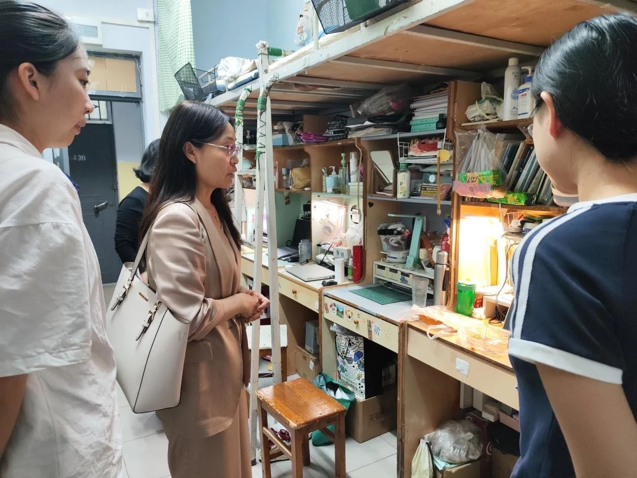 4月29日晚上,李竞艳带领学院各年级辅导员,先后来到校内学七公寓、顺河公寓、仁和公寓的学院本科生和研究生宿舍,对宿舍用电安全和卫生状况进行检查。李竞艳与学生亲切交流,详细了解同学们的学习生活情况,叮嘱学生假期离校外出务必注意人身安全,保持通讯畅通,留校学生要严格遵守宿舍管理规定,保持良好作息。针对检查中发现的部分安全隐患和卫生问题,当场要求整改。