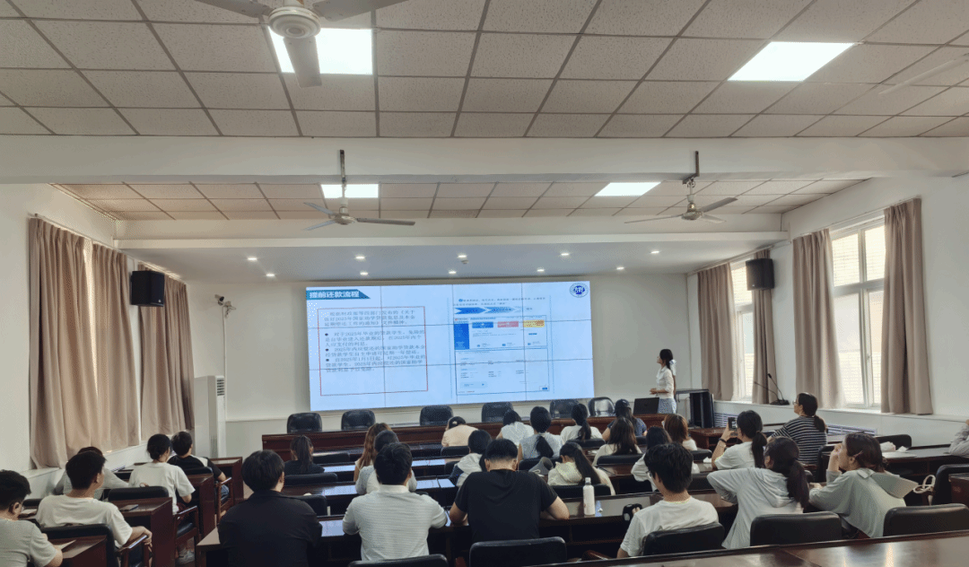 宣讲会伊始,学院资助工作负责人王奕衡同学详细介绍国家及学校的各项资助政策。从国家助学贷款,再到勤工助学、大学生应征入伍优惠政策等,每一项政策都关乎同学们的切身利益。通过具体案例和数据,同学们真切感受到国家和学校对家庭经济困难学生的关怀与支持,这些政策如同一束束温暖的光,照亮同学们的求学之路,让大家在逐梦的道路上无后顾之忧。