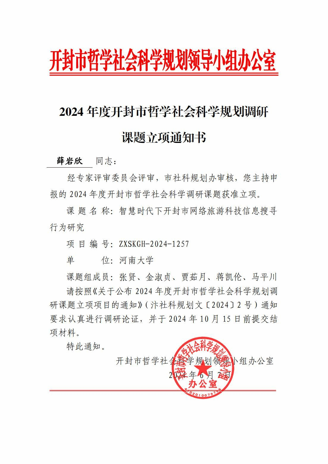 凭旅游与土地利用领域的学术性研究,先后获得开封市哲学社会科学调研课题一、三等奖,这是初入学术赛场的肯定;此外,同时参与郑州兴文化工程文化研究计划调研课题等项目,获得一等奖等奖励,让旅游赋能文化传承的探索被看见。这些奖项不仅是对旅游管理跨领域研究的成果检验,更是淬炼学术锋芒,持续推动薛岩欣同学在交叉研究征途上深耕不辍、砥砺前行。