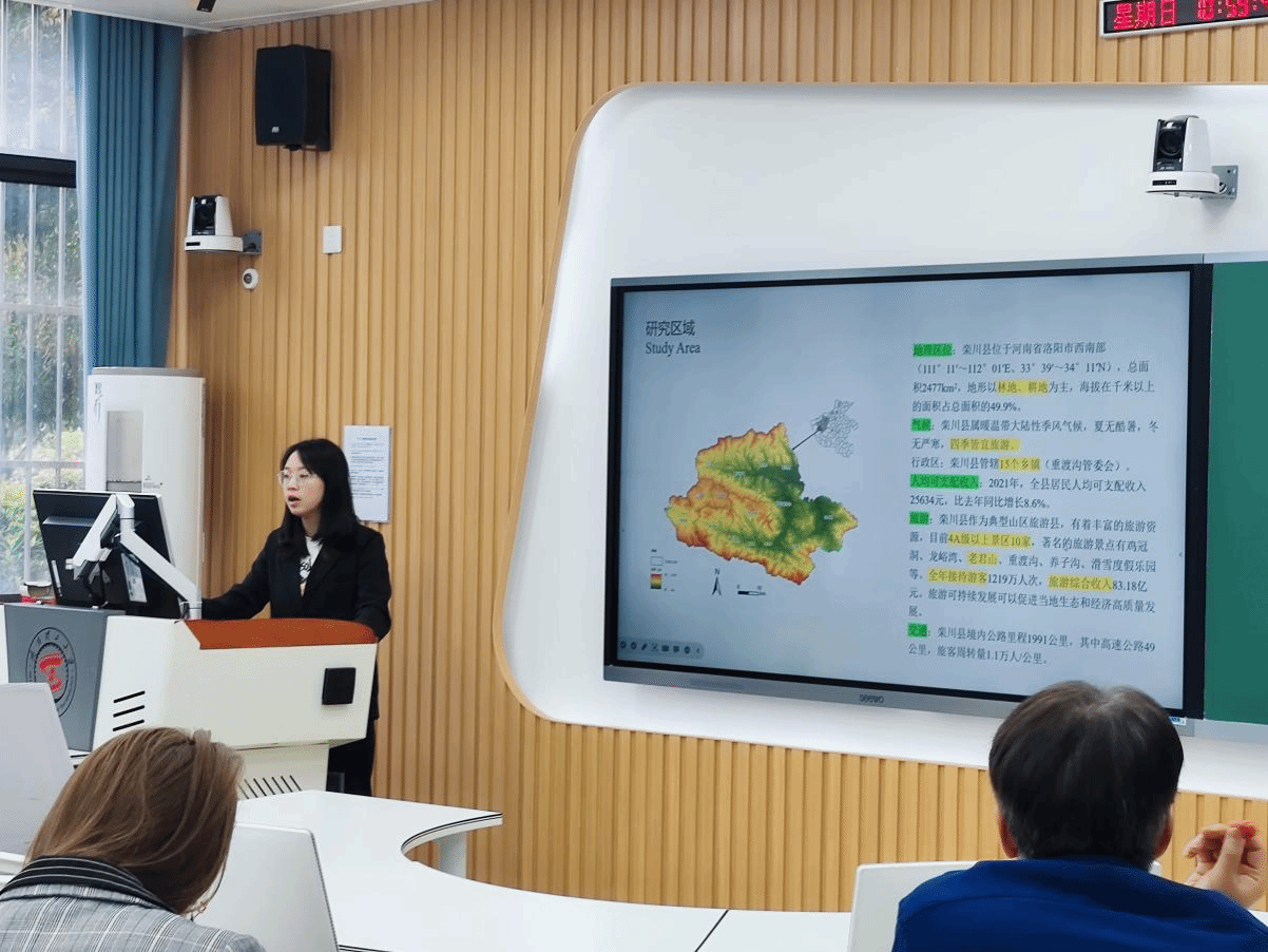 薛岩欣同学刚上研一就聚焦旅游业发展对土地利用的驱动效应研究,以栾川县为典型案例地,系统剖析山区旅游县域土地利用变化的驱动机制。研二,随着对环境问题认知的深入,研究视角逐步拓展至土地利用碳排放与经济增长的脱钩关系,进而聚焦土地利用背景下的环境-经济互动机制。在旅游生态环境持续恶化背景下,其研究重点转向中原城市群旅游生态韧性的协同机制与互动反馈关系,通过跨学科的研究范式,打破旅游管理、土地科学与环境科学的学科壁垒,为交叉领域的学术探索积累了扎实的实证研究素材。
