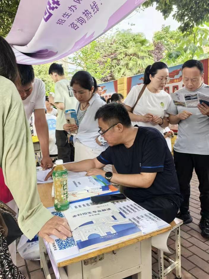 在党委书记孔涛,执行院长李竞艳的带领下,各班子成员、专业教师、学生志愿者组成多个招生宣传团队,分赴省内多地开展招生宣传工作。6月26日,李竞艳、旅游管理系主任张野赴开封高中进行招生宣传;25日-30日,孔涛、李竞艳、刘英钦,教师司艳宇、王忠丽、王闯,学生志愿者张咪柯,马瑞,校友孙飞分赴驻马店第一高级中学、遂平一高、驻马店地区高级中学、泌阳一高、西平高中、平舆一高,新蔡一高、正阳二高、上蔡一高、汝南高中等中学开展宣传、宣讲;聚集省外潜在生源群体,学院组织9个省外学生招生宣传团队,开展回家乡招生宣传活动,赴山东、甘肃、重庆等地开展招生宣传。各宣讲团队聚焦考生和家长关心的招生政策、专业设置、就业前景等关键信息详细解析,帮助考生清晰了解学校及专业发展前景,面对考生和家长提出的志愿填报、专业选择、学习生活等方面问题,团队成员耐心细致解答,并给出针对性建议,受到广大考生和家长们欢迎。