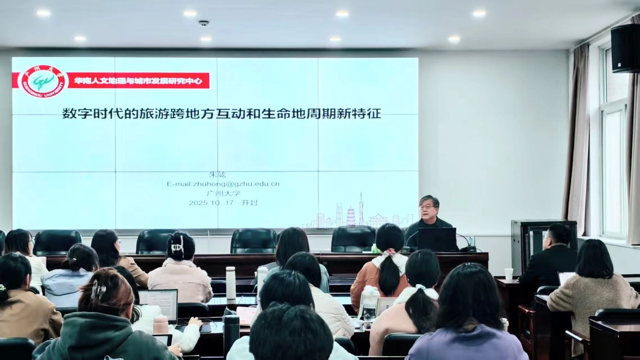 10月17日下午,博士生导师、教育部特聘教授、广州大学地理科学与遥感学院领军人才、广东省城市与移民研究中心主任、享受国务院特殊津贴专家朱竑教授应邀到访beat365,以《数字时代的旅游跨地方互动与生命地周期新特征》为题,为beat365师生带来了一场兼具理论深度与实践洞察的专题学术讲座。本次讲座由beat365亚洲版官网执行院长李竞艳主持。