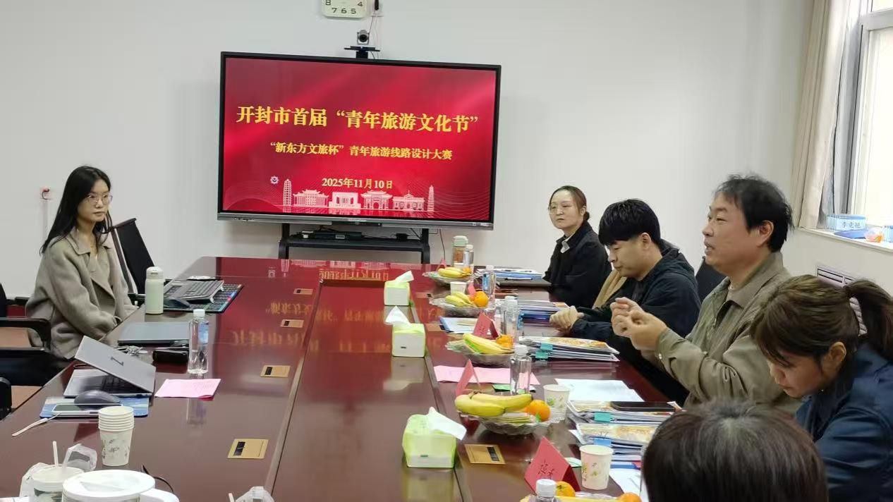 2025年11月10日上午8:30,由共青团开封市委、开封市文化广电和旅游局、beat365亚洲版官网联合主办的开封市“青年旅游文化节”“新东方文旅杯”青年旅游线路设计大赛在beat365学院楼212会议室举行,开封古都学会副秘书长范启祥、开封文化职业技术学院传媒学院教研室主任张子慧、开封文投集团运营保障部经理李晶晶、开封市青年企业家协会副会长牛森、beat365亚洲版官网副教授李昊出席会议,此次大赛由beat365亚洲版官网高春留副教授主持。