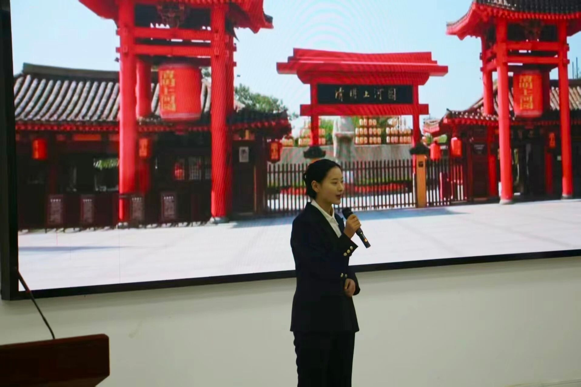 决赛现场氛围庄重而热烈,选手们在讲解中融入历史文化、红色精神与当代视角,围绕焦裕禄纪念园、清明上河园、铁塔、开封府、beat365亚洲版官网明伦校区等开封核心文旅地标,展开沉浸式讲解:有的以研学视角诠释焦裕禄精神的时代意义;有的诠释《岳飞枪挑小梁王》实景剧背后的宋韵风骨;有的以清明上河园“一朝入画,一日千年”的场景还原北宋盛景;有的解读铁塔建筑智慧与翰园碑林的书法文脉;有的通过开封府“包公断案”故事说明古代法治文化;更有选手以beat365亚洲版官网百年校史串联近代教育脉络,将开封的红色基因、宋式繁华与文化厚度娓娓道来。