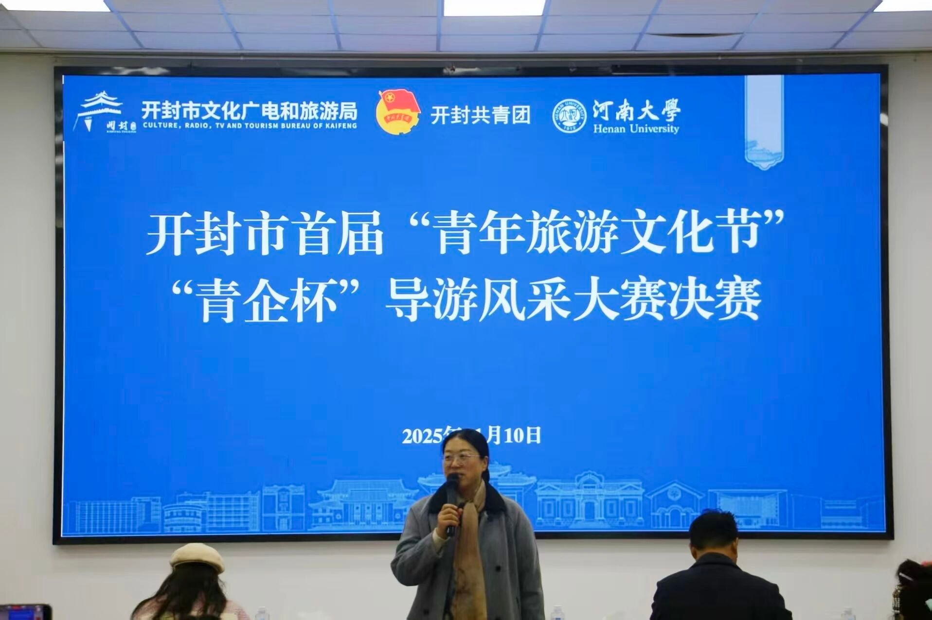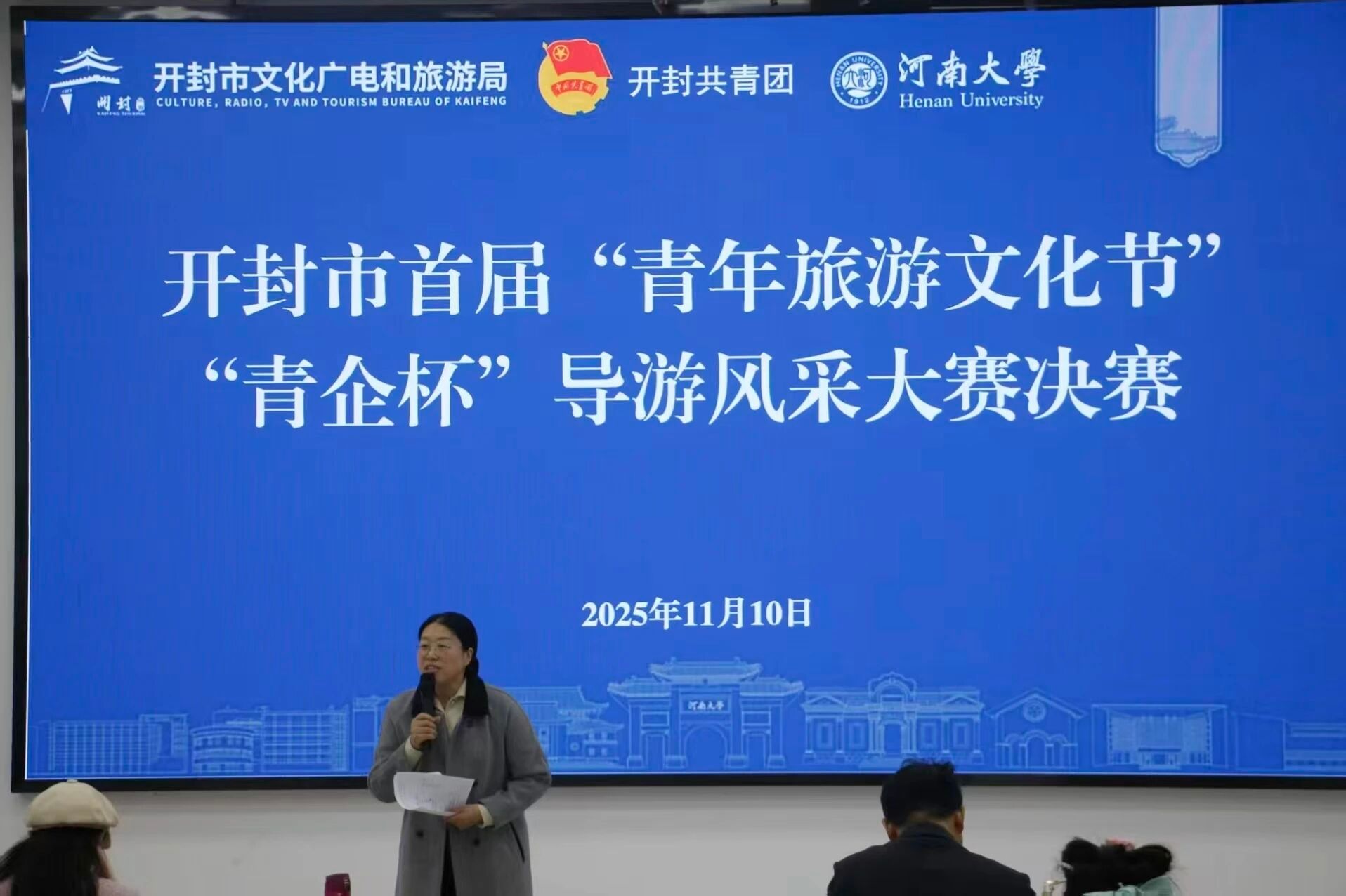 11月10日上午8:00,由共青团开封市委、开封市文化广电和旅游局、beat365亚洲版官网联合主办的开封市“青年旅游文化节”“青企杯”导游风采大赛决赛在beat365亚洲版官网科技馆一楼拉开帷幕。12位青年选手齐聚赛场,以专业讲解与多元才艺,展现开封文旅资源的深厚底蕴与青春活力,体现了青年导游的专业素养与文化传承活力,为古都文旅发展注入新生力量。出席活动的评委包括开封市青年企业家协会常务副会长张留洋,黄河水利职业技术大学旅游学院副院长徐永红,郑州海外国际旅行社有限公司开封第二分公司计调经理王莹以及beat365副教授司艳宇、常建霞。此次比赛由司艳宇老师主持。