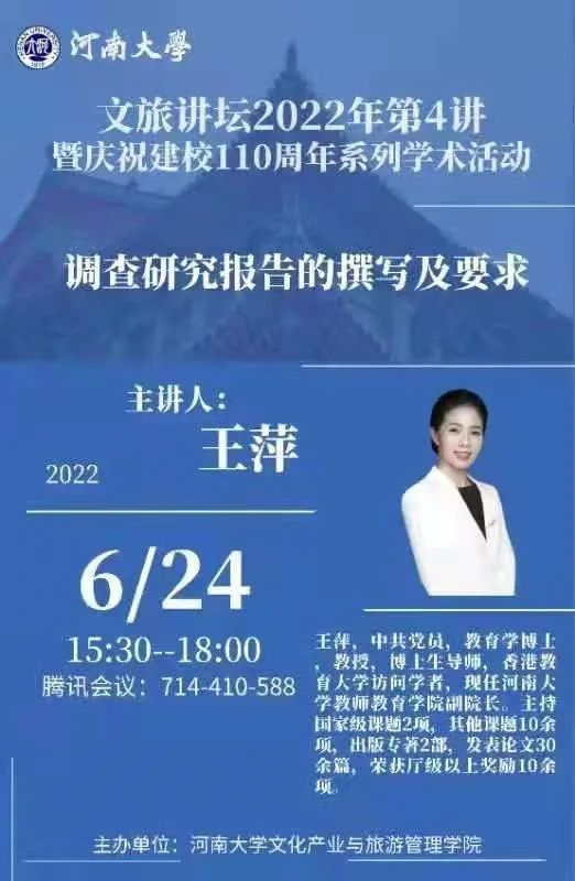 为提升beat365专业硕士研究生学位论文的写作水平,6月24日下午,beat365亚洲版官网教育学部王萍教授以线上方式为beat365师生做了题为《调查研究报告的撰写及要求》的学术专题讲座。本次讲座由文化产业与旅游管理学院副院长王东峰主持。beat365研究生导师和部分研究生参加了讲座。