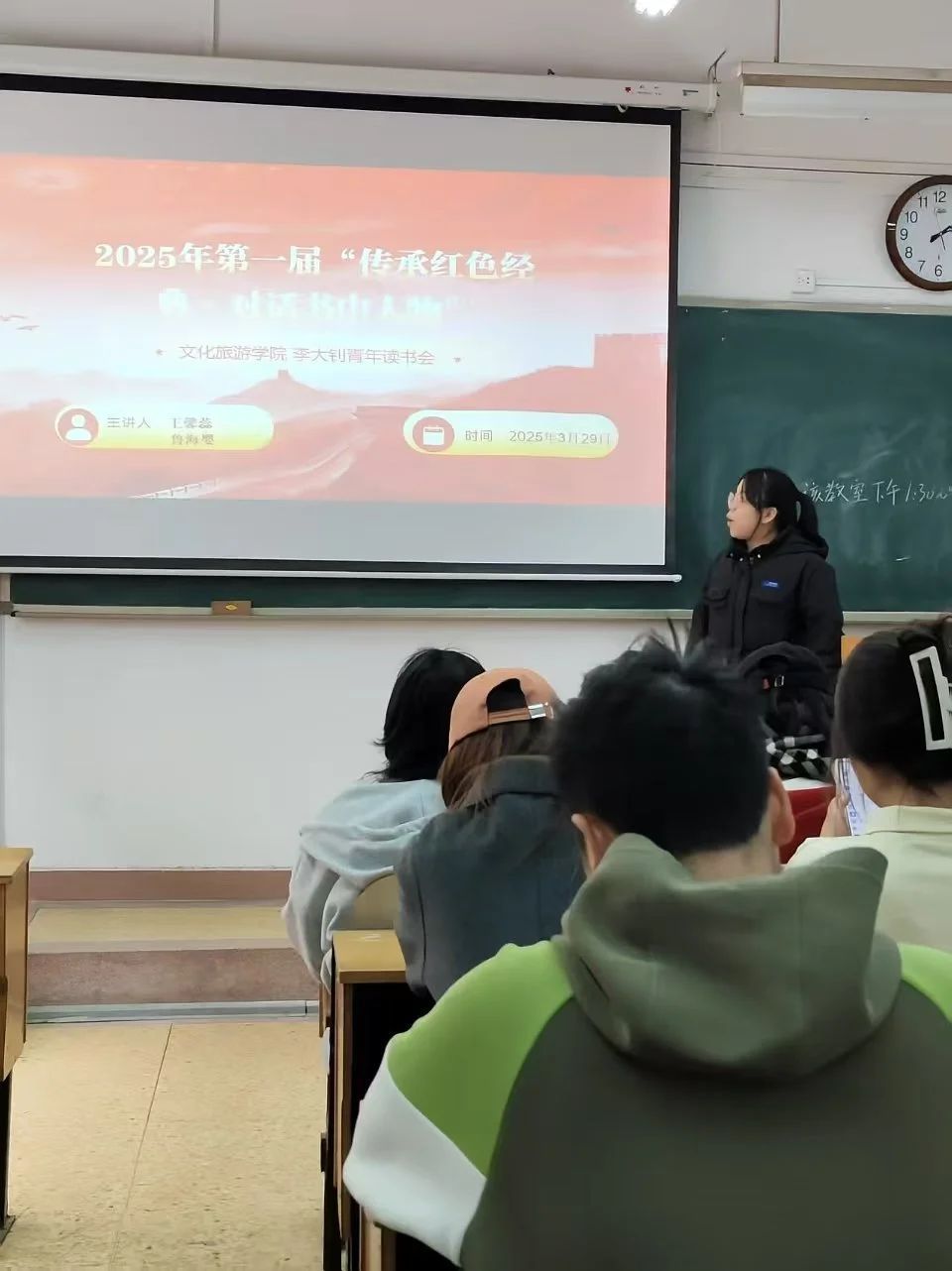 春日的暖阳洒在校园的每一个角落,3月29日下午,beat365亚洲版官网李大钊青年读书会在社长刘思月的带领下,由负责人王馨蕊、鲁海婴精心策划组织的“2025年第一届传承红色经典·对话书中人物”主题活动在综合楼112教室成功举办。这场以红色经典为纽带的文化盛宴,通过角色扮演、配音互动、猜书挑战等创新形式,吸引众多学生参与,在沉浸式体验中实现了跨越时空的精神对话。参与者们拿着革命人物的台词卡,声情并茂地演绎革命故事,以青春之声致敬峥嵘岁月,书写了一场别开生面的红色教育实践。
