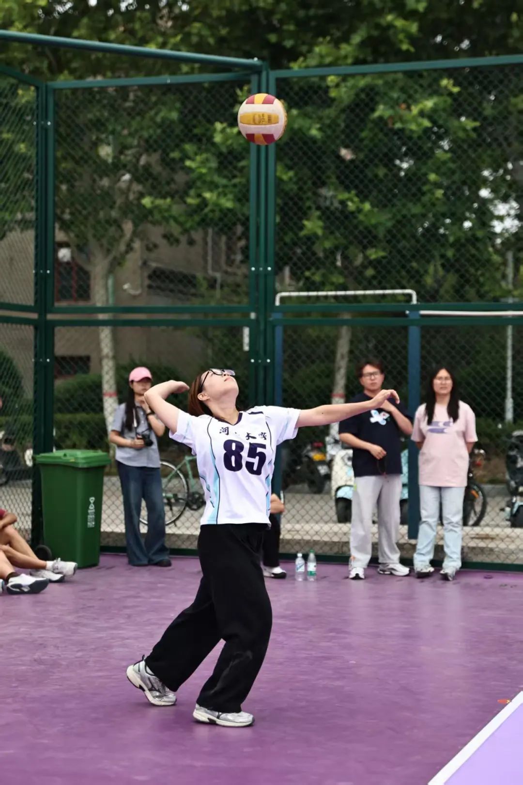 最激动人心的时刻当属决赛。面对实力强劲的教育学部女排,女排队员们眼神坚定,充满斗志。以2:1的比分战胜教育学部女排,成功卫冕冠军!