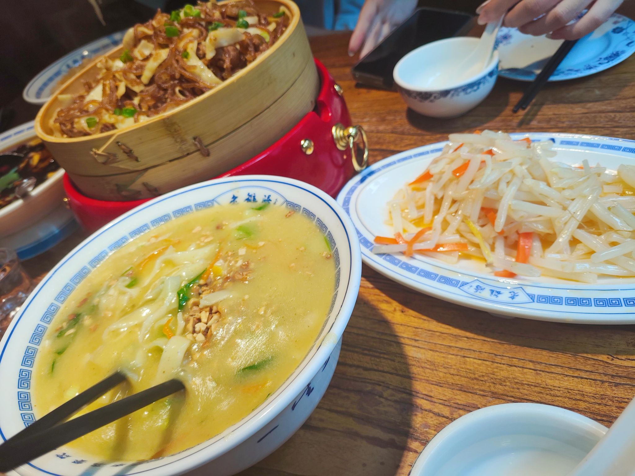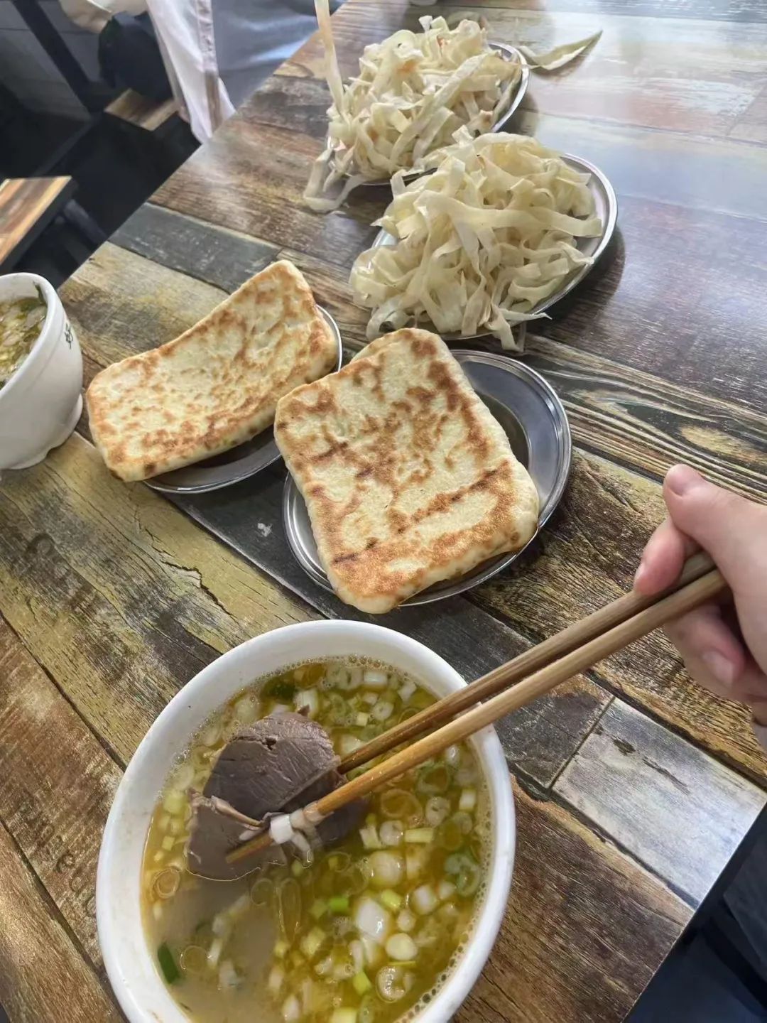 洛阳美食以“汤”为魂,重酸辣,这种辣是胡椒的辛辣,具有代表性的如不翻汤、丸子汤。水席是洛阳另一特色美食,比较出名的是八大碗,也体现着洛阳菜汤水多的特点。研习期间,我们品尝了不少当地特色。早上起来,到街边小店要上几碗牛肉汤、驴肉汤,泡点劲道的饼丝或就着香酥的烧饼,热气腾腾,能量满满。洛阳也有不少甜口美食,像蜜汁红薯、八宝饭、山楂捞,体现着当地饮食文化的多元包容。