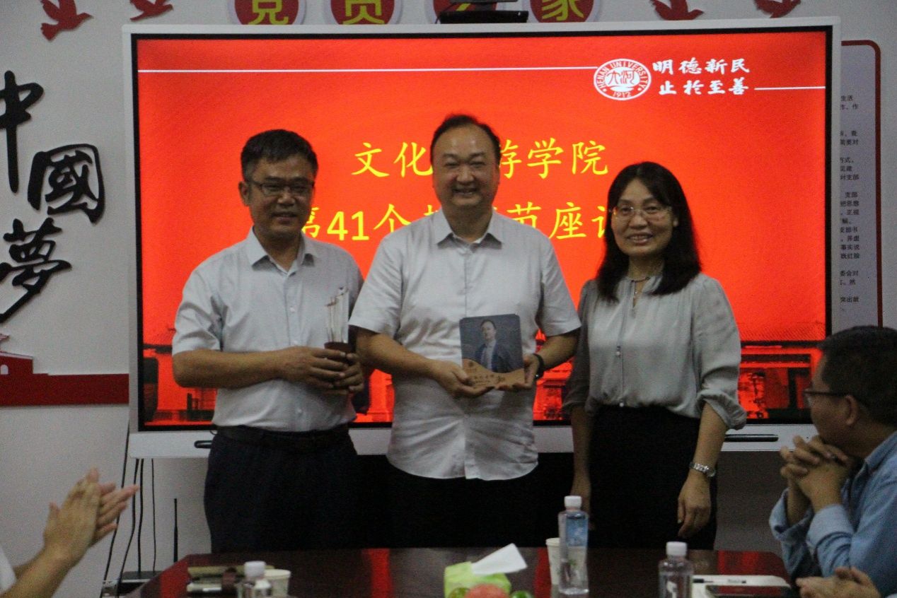 随后,拥有丰富教学经验、长期助力学院发展的彭恒礼进行交流。他结合自身教学经历,分享了育人心得与教育思考,字里行间饱含对教育事业的热爱,既为年轻教师传授了经验,也表达了深切期许。学院为其献花并颁发奖章,以表彰其在教育教学工作中取得的突出成就。