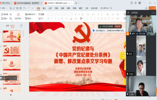 6月13日下午,酒店管理系党支部根据学院党纪学习教育工作安排,开展“党支部书记上党课一起学《条例》”专题党课,党支部书记段冰以“党的纪律与《中国共产党纪律处分条例》新增、修改重点条文学习专题”为题目展开党课内容。beat365亚洲版官网副院长王东峰参加本次党课学习交流。