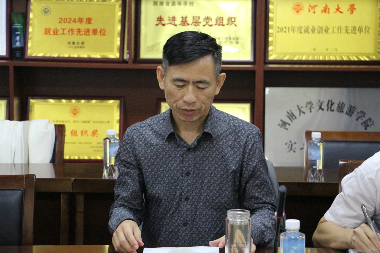 会议伊始,与会师生共同观看了习近平总书记考察河南时的相关视频。孔涛领学了习近平总书记重要讲话精神相关内容,强调了习近平总书记此次考察对河南发展的重大意义,学院作为文旅人才培养的重要基地,必须积极响应习近平总书记号召,为河南文旅产业的繁荣发展贡献智慧和力量。文化旅游研究基地首席专家程遂营教授从专业角度解读了习近平总书记讲话精神的重要意义,尤其指出文旅产业作为战略性支柱产业,对推动河南高质量发展、提升文化自信具有不可替代的作用。执行院长李竞艳指出,习近平总书记视察河南的重要讲话精神,为文旅行业发展指明了方向、规划了蓝图、明确了路径,对于专业发展具有极其重要的指导意义。要瞄准国家战略需求,做大、做强国家文化公园建设研究和乡村文旅研究,为我省文旅文创融合发展和乡村振兴贡献河大文旅力量。