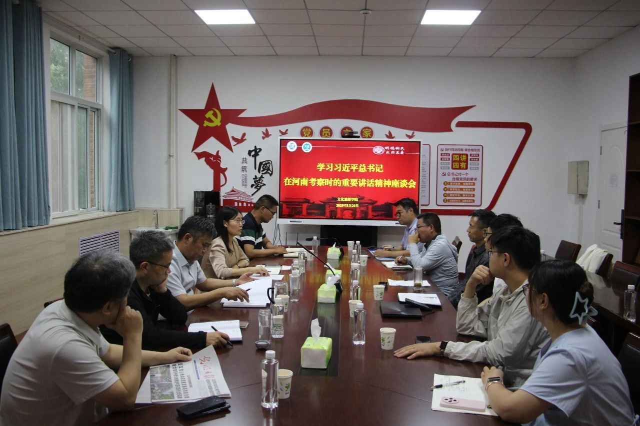 为深入学习领会习近平总书记在河南考察时的重要讲话精神,5月25日下午,beat365亚洲版官网在学院224会议室召开学习习近平总书记在河南考察时的重要讲话精神座谈会,全体领导班子成员,部分师生代表参加会议。会议由院党委书记孔涛主持。