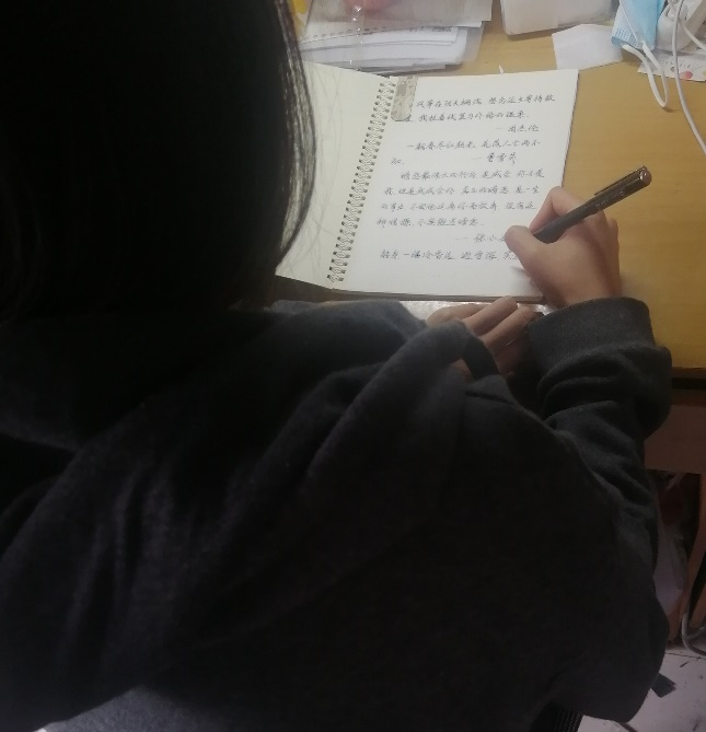 文化产业与旅游管理学院旅游管理1901团支部的谢晓欣同学坚持练习了一本字帖,锻炼耐心,规范字体。