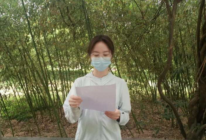 旅游管理1901团支部的唐丽同学做了一次以“珍爱地球 人与自然和谐共生”为主题的演讲,呼吁大家保护环境。