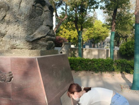 文化产业与旅游管理学院研究生团支部的杨湉湉同学选择在明伦校区六号楼门前李大钊先生的雕塑处,为其献一束花来表达对李大钊先生的敬重与怀念,以此献礼团的百年。