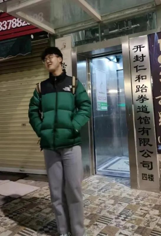 旅游管理类2101团支部的彭程将团徽佩戴胸前并与团徽合影,以影像形式的记录,以文字的形式抒发感情。