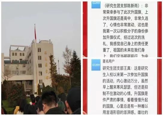 研究生团支部闫萍:虽然此次升旗仪式意义重大,一代人有一代人的使命,一代人有一代人的担当。我们作为青年大学生要奋勇争先,拼搏进取,努力为祖国建设添砖加瓦。
