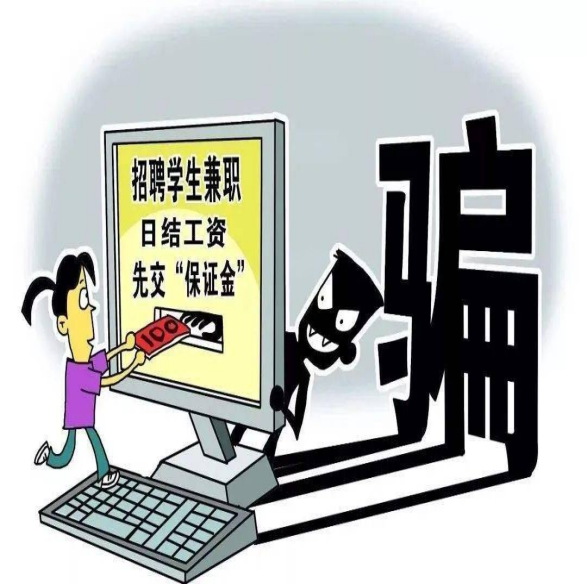 押金骗局:求职过程中需要先缴纳各种费用,这类骗局通常在招工广告上称有文秘、打印、公关等轻松、体面的工作,求职学生只需交纳一定的保证金即可上班。学生付钱以后,招聘单位要学生听候消息,接下来便石沉大海。
