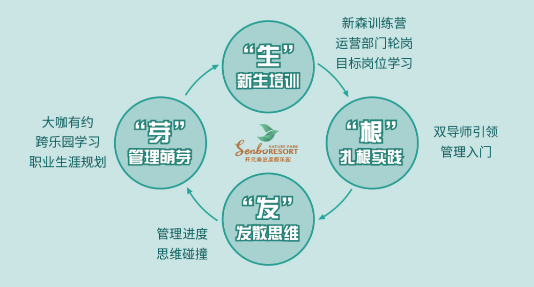 新森代计划旨在培养森泊未来管理人才,将热爱旅游行业、有发展潜质、勤奋有同理心,并且与森泊志同道合的应届本科毕业生选拔进来,通过精心设计的为期两年的系统培养方案,在一定时间内完成储备管理人员、基层管理人员、中高层管理人员的职业发展。