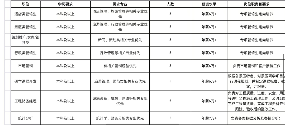 景区类管培生(5人)