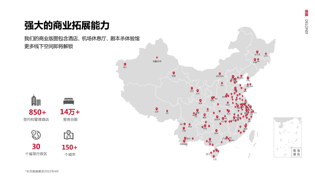 德胧集团(海南德胧酒店管理有限公司)是一家经营酒店、餐饮、休闲娱乐、线下娱乐、机场休息厅等体验消费的公司,集团旗下拥有高端酒店集团“开元酒店集团”,及开拓新体验消费的“百达屋生活方式实验室”。