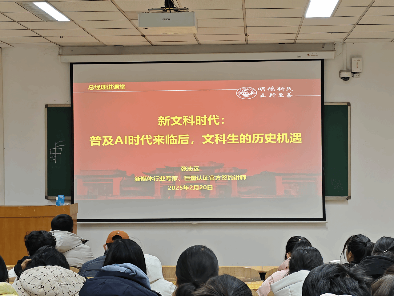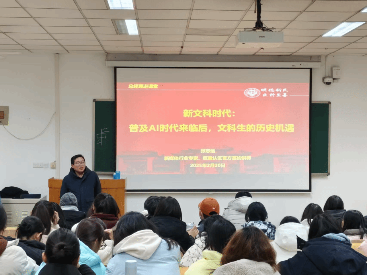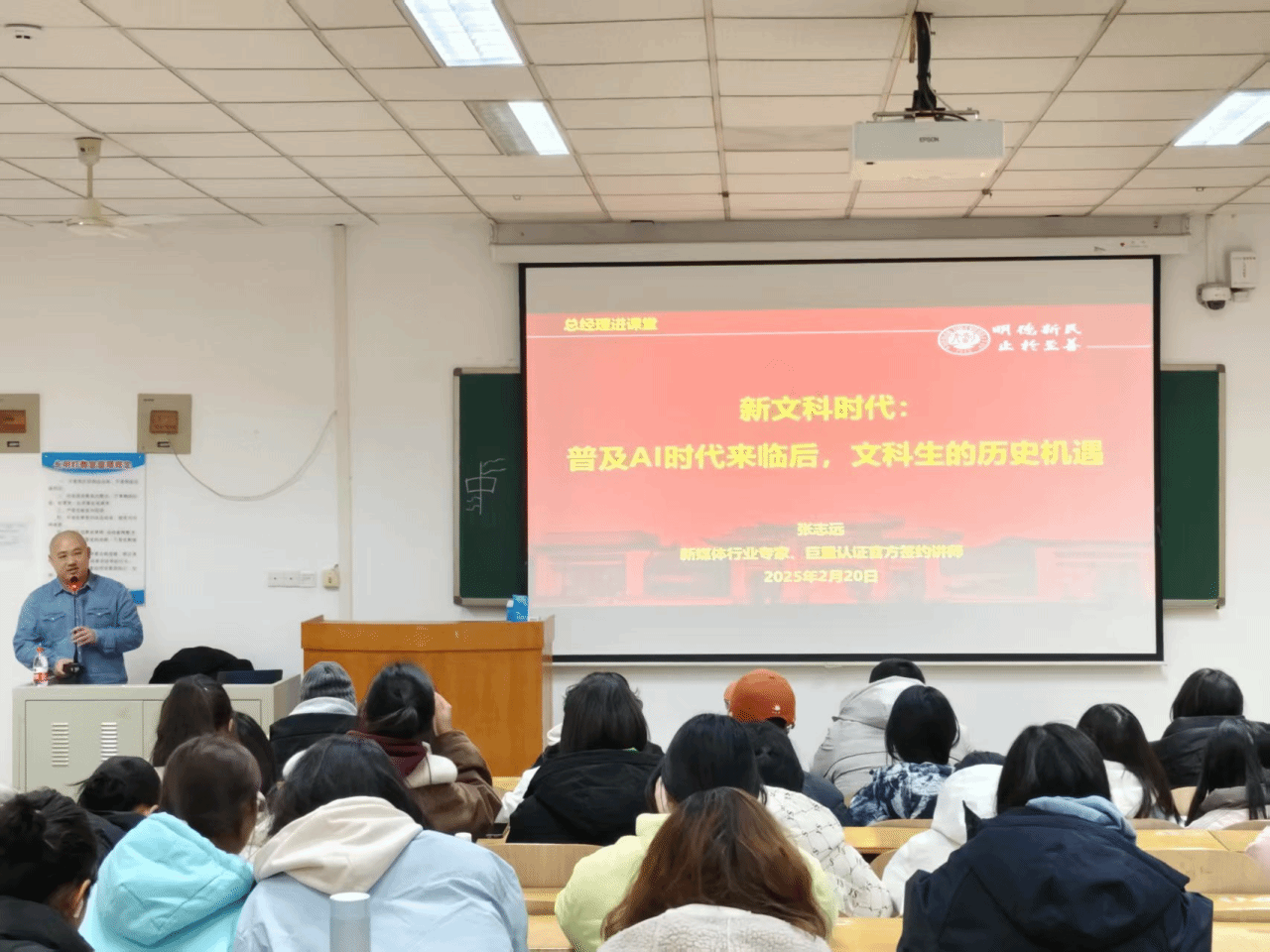 为了更好地了解市场前沿,提升专业素养,2月20日下午3:00,beat365亚洲版官网在明伦校区综合楼109教室举办“总经理进课堂”系列活动之新文科时代——AI+新媒体,特邀新媒体行业专家、02级旅游管理校友、上海交大EMBA、巨量认证官方签约讲师张志远走进课堂与同学们一起畅游AI世界,学院各年级学生参加了活动。
